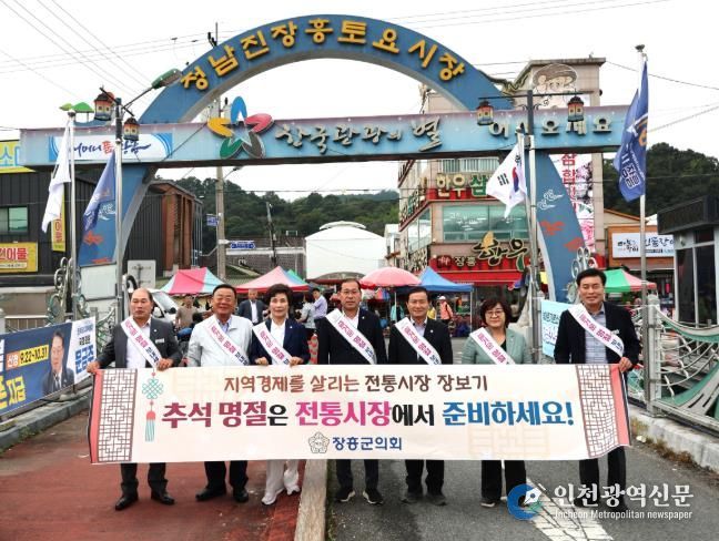 [인천광역신문] 관리자 기자 | 장흥군의회는 10월 2일, 지역 대표 전통시장인 정남진 토요시장에서 ‘추석 맞이 장보기 행사’를 열었다.