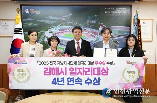 [인천광역신문] 관리자 기자 | 김해시는 지난 9월 30일 청주 오스코에서 개최된 ‘2025년 전국 지방자치단체 일자리대상’에서 경남 유일 9번째 일자리대상을 수상했다고 2일 밝혔다.