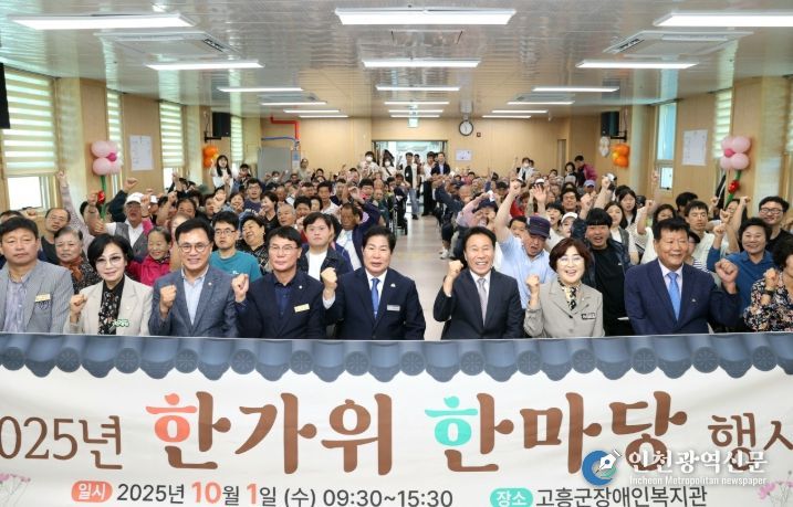[인천광역신문] 관리자 기자 | 고흥군은 지난 1일 장애인복지관에서 추석을 맞아 장애인복지관 이용자와 장애인 가족, 자원봉사자 등 160여 명이 함께하는 ‘2025 한가위 한마당 행사’를 뜨거운 호응 속에 진행됐다고 밝혔다.