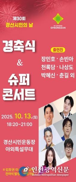 조현일 경산시장은 “이번 슈퍼콘서트는 경산시 시·군 통합 30주년을 기념하는 뜻깊은 자리이자, 아이 키우기 좋은 도시 경산의 비전을 시민과 함께 나누는 축제의 장”이라며, “세대와 가족이 함께 어우러지는 공연을 통해 저출생 문제 극복에 대한 사회적 공감대를 더욱 확산해 나가겠다”고 밝혔다.