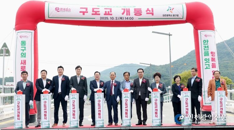 이날 개통식에는 박희조 동구청장, 오관영 동구의회의장, 이장우 대전시장을 비롯한 주요 내빈과 지역 기관·단체장, 주민 등 200여 명이 참석해 새롭게 단장한 구도교의 개통을 함께 축하했다.
