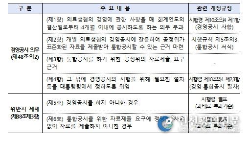 [인천광역신문] 관리자 기자 | 공정거래위원회는 보건·의료생활협동조합 및 연합회(이하 ‘의료생협 등’)에 대한 관리·감독을 강화하기 위해 사업결산 보고서 등을 경영공시하도록 하는 내용으로 『소비자생활협동조합법』(이하 ‘생협법’)이 개정(’25.4.1.)됨에 따라 의료생협 등이 공시해야 하는 경영공시 사항과 같이 법률에서 위임된 사항과 그 시행에 필요한 사항을 담은 생협법 시행령 및 시행규칙을 개정하여 2025년 10월 2일부터 시행한다고 밝혔다.