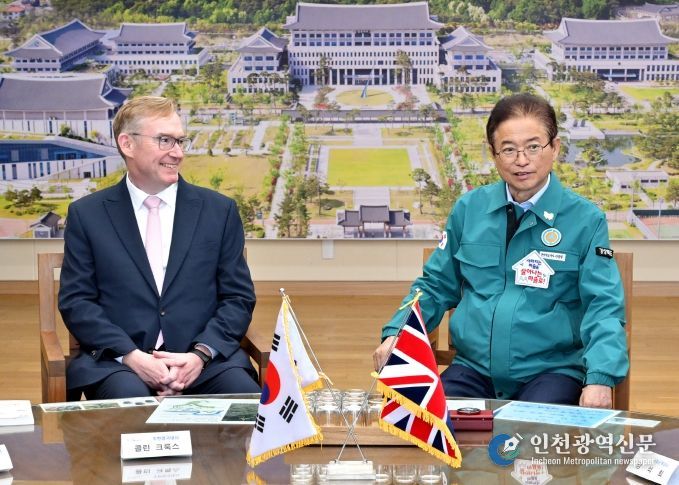 [인천광역신문] 관리자 기자 | 이철우 경상북도지사는 3일 도청을 방문한 콜린 크룩스(Colin Crooks) 주한 영국대사 내외와 만나, 경주 APEC 정상회의의 성공적 개최 협력 방안과 함께 산업·문화·교육 등 다양한 분야의 교류 확대를 논의했다.