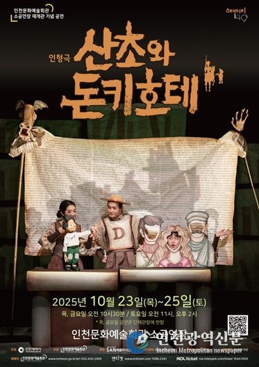 [인천광역신문] 최예준 기자 | 인천문화예술회관은 오는 10월 23일부터 25일까지 소공연장에서 예술무대산의 가족 인형극 〈산초와 돈키호테〉를 무대에 올린다. 이번 공연은 어린이 눈높이에 맞춘 명작을 소개하는 인천문화예술회관의 ‘어린이명작무대’의 일환으로 마련됐다.