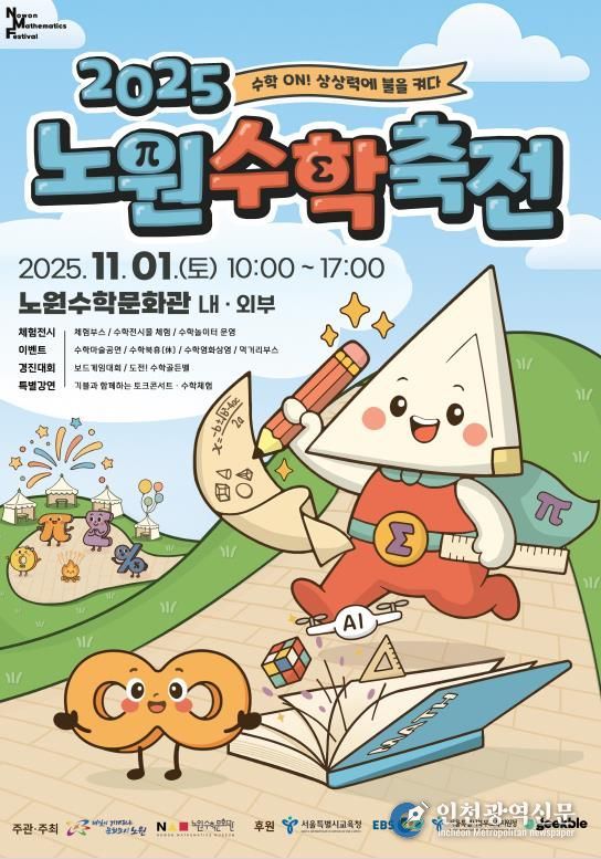[인천광역신문] 최훈 기자 | 서울 노원구는 오는 11월 1일 노원수학문화관 일원에서 ‘2025 노원수학축전’을 개최한다고 밝혔다.