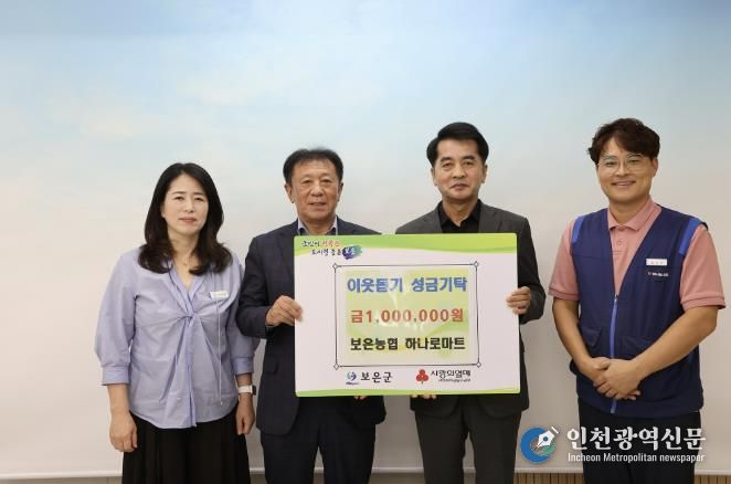 [인천광역신문] 관리자 기자 | 보은농협 하나로마트는 10일 보은군청을 방문해 취약계층을 위해 사용해 달라며 이웃돕기 성금 100만원을 기탁했다.