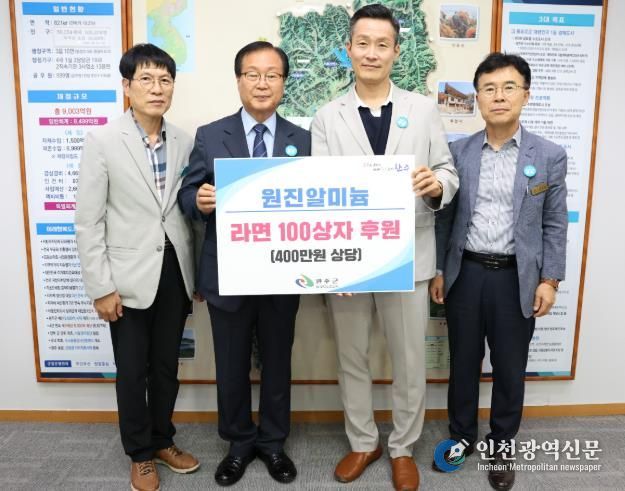 [인천광역신문] 관리자 기자 | ㈜원진알미늄이 완주군에 라면 100상자(환가액 400만 원 상당)를 전달했다.