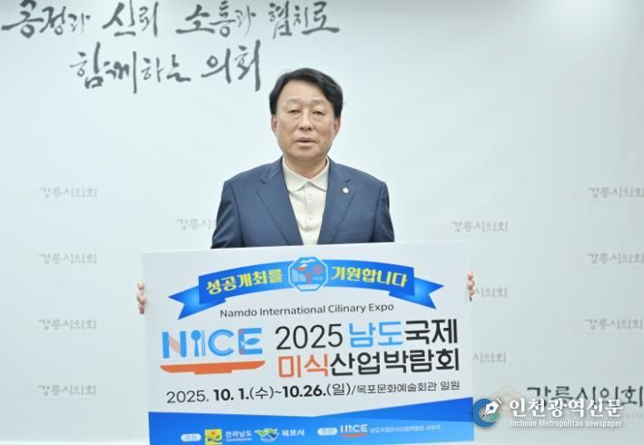[인천광역신문] 관리자 기자 | 강릉시의회 최익순 의장이 ‘2025 남도국제미식산업박람회’의 성공 개최를 기원하는 릴레이 응원 챌린지에 동참했다.