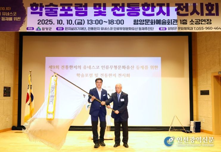 [인천광역신문] 관리자 기자 | 함양군은 ‘제4회 한지의 날’을 맞아 10월 10일 함양문화예술회관에서 전통한지의 유네스코 인류무형문화유산 등재를 위한 제9회 학술포럼 및 전시회를 성황리에 개최했다고 밝혔다.