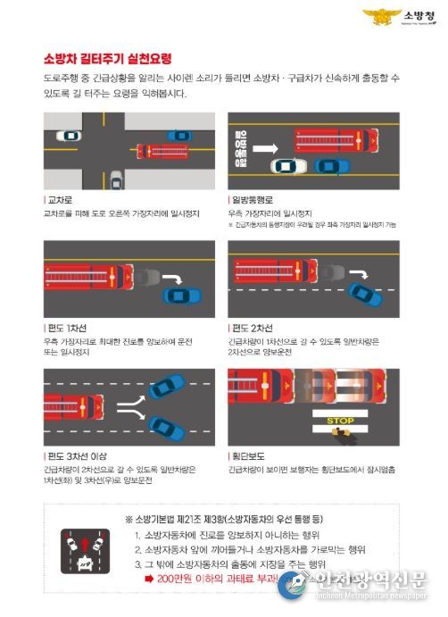 [인천광역신문] 관리자 기자 | 앞으로 소방차, 구급차 등이 적시에 현장에 도착할 수 있도록 긴급자동차의 원활한 도로 통행을 위한 제도적 기반이 마련될 것으로 기대된다.