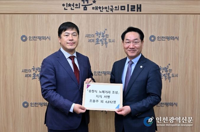 ‘시민소통시장실’은 민선 8기 인천시의 대표 소통 정책으로, 시민과의 직접적인 의견 교류를 위해 운영되고 있다. 이번에 추진위원회가 제안한 ‘송창식 노래거리 조성’은 중구 신흥동 일원에 노래거리를 조성하자는 취지로, 총 4,812명의 시민 공감을 얻은 서명부가 유정복 시장에게 전달됐다.
