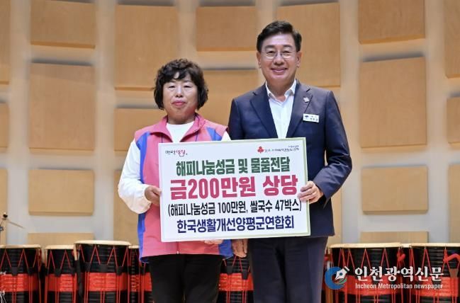 [인천광역신문] 관리자 기자 | 한국생활개선양평군연합회는 지난 9월 30일부터 10월 1일까지 강릉 한국여성수련원에서 열린 ‘2025년 생활개선양평군연합회 한마음대회’에서 쌀국수 47박스와 현금 100만 원, 총 200만 원 상당의 해피나눔성금을 기탁했다고 밝혔다.