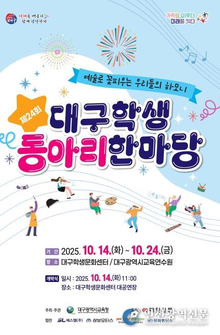 [인천광역신문] 관리자 기자 | 대구시교육청은 10월 14일부터 10월 24일까지 대구학생문화센터와 대구교육연수원에서 ‘제24회 대구학생동아리한마당’을 개최한다.