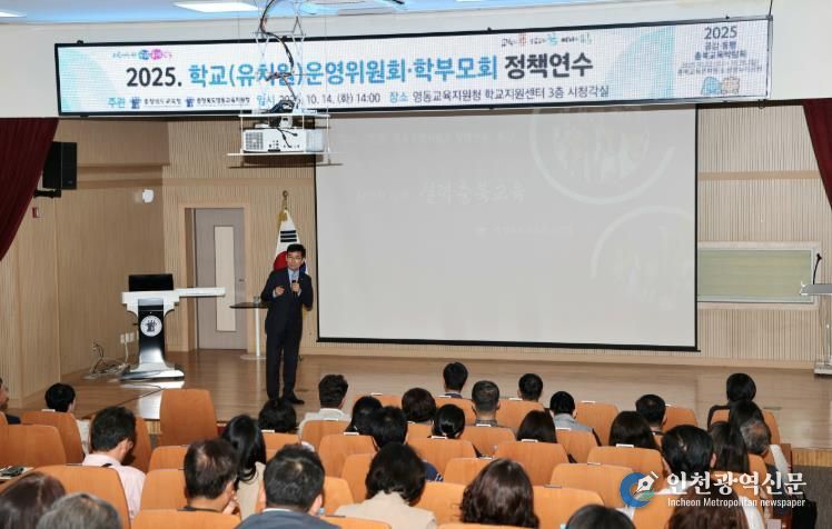 [인천광역신문] 관리자 기자 | 충청북도영동교육지원청은 14일 영동교육지원청 학교지원센터 3층 시청각실에서 관내 유·초·중·고등학교 운영위원, 학부모회 임원, 학교(원)장, 행정실장 120여 명을 대상으로 2025. 학교(유치원)운영위원회·학부모회 정책연수를 실시했다.