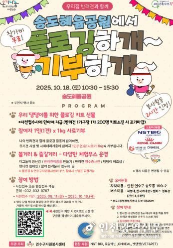 [인천광역신문] 최예준 기자 | 연수구자원봉사센터는 오는 18일 송도혜윰공원에서 반려견과 함께하는 환경 기부 캠페인 ‘플로깅하개~ 기부하개~’를 개최한다.