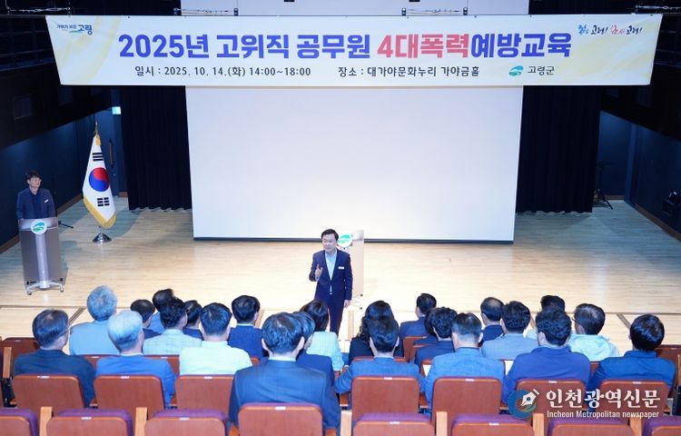 [인천광역신문] 관리자 기자 | 고령군은 14일 문화누리 가야금홀에서 이남철 군수를 비롯한 고위직 공무원 37명을 대상으로 4대 폭력(성희롱, 성폭력, 성매매, 가정폭력) 예방교육을 실시했다.