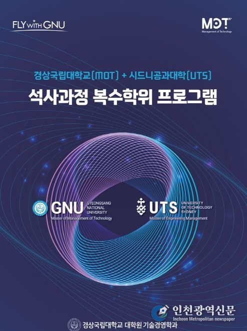 [인천광역신문] 관리자 기자 | 경상국립대학교가 호주 시드니공과대학교(University of Technology Sydney, 이하 UTS)와 손잡고 글로벌 기술경영 전문인력 양성을 위한 석사 복수학위 과정을 본격 추진한다.