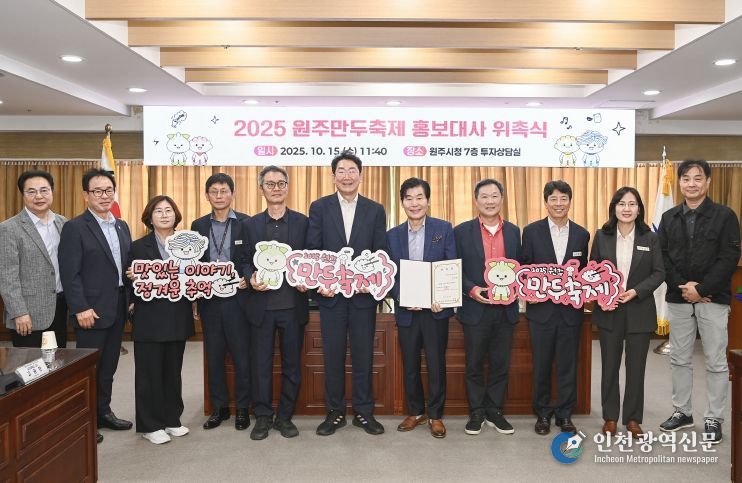 [인천광역신문] 관리자 기자 | 원주시는 오는 10월 24일부터 10월 26일까지 3일간 열리는 '2025 원주만두축제'의 성공적 개최를 위해, 10월 15일 이연복 셰프 홍보대사 위촉식과 축제 최종 보고회를 잇달아 개최했다.