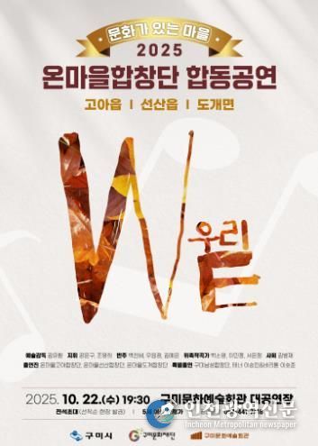 [인천광역신문] 관리자 기자 | 구미문화재단은 ‘문화가 있는 마을’ 사업의 일환으로 운영 중인 온마을합창단의 합동공연을 오는 10월 22일 오후 7시 30분 구미문화예술회관 대공연장에서 개최한다고 밝혔다.