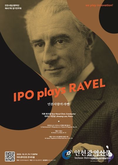 [인천광역신문] 최예준 기자 | 인천시립교향악단(예술감독 최수열)이 오는 10월 31일 오후 7시 30분, 아트센터인천 콘서트홀에서 제437회 정기연주회 〈인천시향의 라벨 IPO plays Ravel〉을 선보인다.