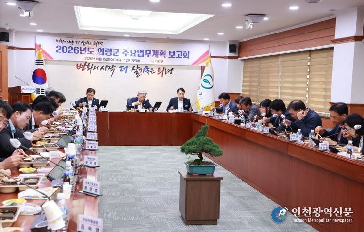 [인천광역신문] 관리자 기자 | 의령군은 15일 군청 회의실에서 신규·핵심사업과 내년도 주요 사업의 실행 계획을 논의하기 위한 ‘2026년도 주요업무계획 보고회’를 개최했다고 밝혔다.