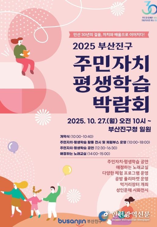 ‘민선 30년의 걸음, 자치와 배움으로 이어지다!’라는 슬로건으로 ‘2025년 부산진구 주민자치·평생학습 박람회’를 10월 27일 부산진구청에서 개최한다고 밝혔다.