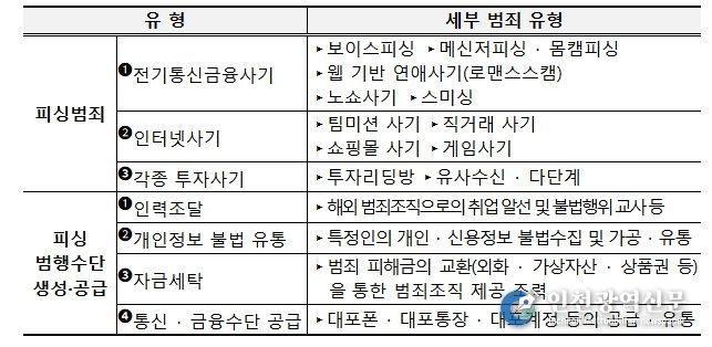 또한, 특별자수ㆍ신고 기간 운영을 통해 보이스피싱 · 투자사기 등 피싱범죄의 해외 콜센터ㆍ자금세탁 등 조직원부터 국내 수거책 · 인출책 등 하부조직원, 대포물건 명의자 등 단순 가담자에 이르기까지 자수의 기회를 폭넓게 제공할 예정이다.
