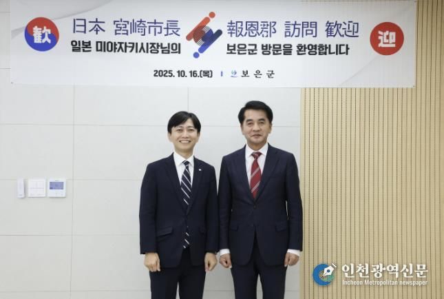 [인천광역신문] 관리자 기자 | 대한민국 대표 농특산물 축제인 ‘2025 보은대추축제’에 일본 자매도시 미야자키시 기요야마 토모노리 시장을 비롯한 대표단이 방문해 양 도시 간의 굳건한 우호 관계를 재확인하고 교류 확대 방안을 논의했다.