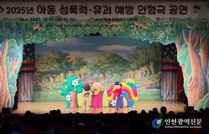 [인천광역신문] 최예준 기자 | 인천시 중구는 지난 17일 영종 하늘문화센터 대강당에서 관내 어린이집 미취학 아동 300여 명을 대상으로 어린이 성범죄 예방을 위한 인형극 공연 ‘호랑이를 물리친 오누이’를 실시했다.