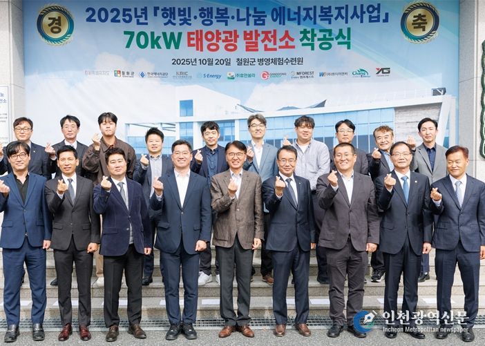 [인천광역신문] 관리자 기자 | 10월 20일 오전 11시, 철원군 갈말읍에 위치한 철원군병영체험수련원에서 '햇빛·행복·나눔 에너지복지사업 70kW 태양광 발전소 착공식'이 열렸다. 이 행사에는 강원특별자치도 산업국장, 철원군수, 한국에너지공단 강원지역본부장, 한국기후변화연구원장, 그리고 강동에너지대표이사 등 5개 신재생에너지 관련 민간기업 대표가 참석했다.