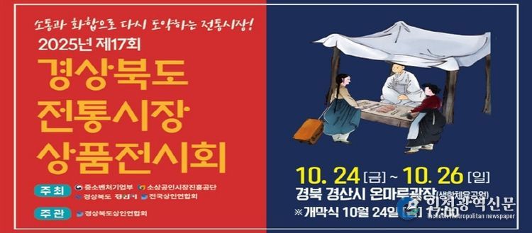 [인천광역신문] 관리자 기자 | 경상북도와 경산시는 24일부터 26일까지 3일간 온마루광장(구 경산생활체육공원 어귀마당)에서 ‘제17회 경상북도 전통시장 상품전시회’를 개최한다.