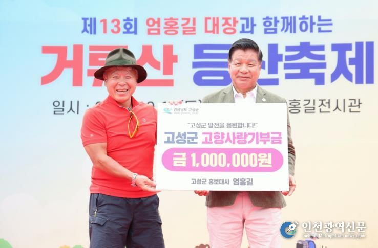 [인천광역신문] 관리자 기자 | 고성군은 10월 18일, 고성군 홍보대사인 엄홍길 대장이 고향사랑기부금 100만 원을 기탁했다고 밝혔다.