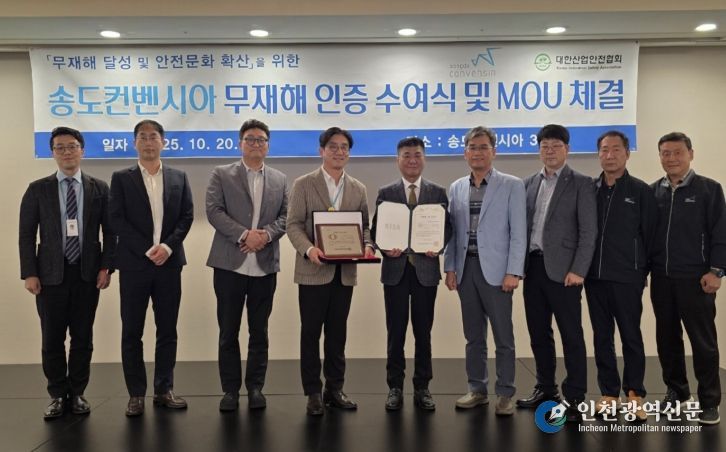 [인천광역신문] 최예준 기자 | `인천경제자유구역청과 인천관광공사(사장 백현)가 운영하는 송도컨벤시아는 494일 동안 산업재해 없는 안전한 사업장 운영 성과를 달성해, 20일 대한산업안전협회로부터 무재해 인증을 획득했다.