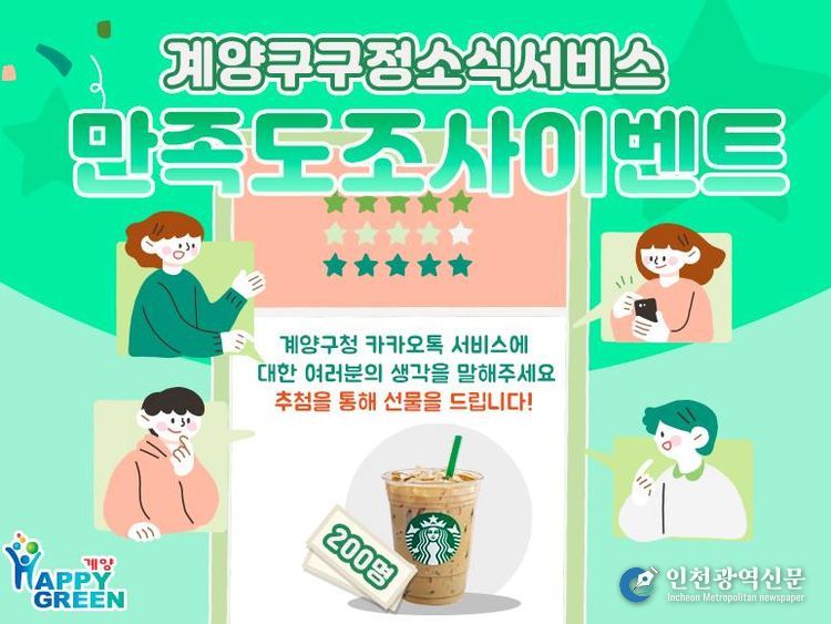 [인천광역신문] 관리자 기자 | 인천광역시 계양구는 10월 22일부터 11월 5일까지 15일간 구정소식지 ‘계양산메아리’와 계양구청 카카오톡 채널에 대한 만족도 조사를 실시한다고 밝혔다.