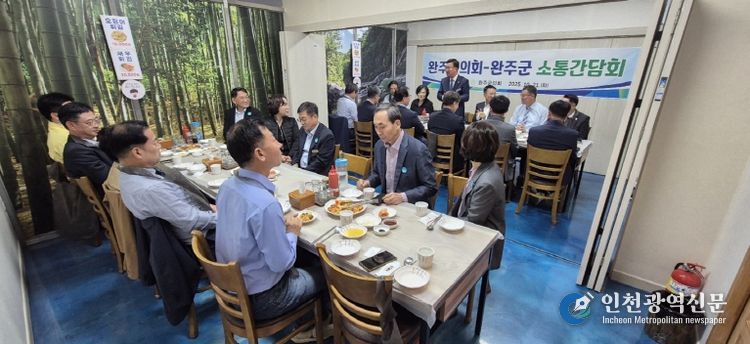 [인천광역신문] 관리자 기자 | 완주군의회는 21일 삼례읍 수계리의 한 식당에서 유희태 군수를 비롯한 간부 공직자들과 함께 소통 간담회를 열고, 남은 후반기 임기 동안 의회와 집행부 간 협력 강화와 완주군 발전 방향을 모색했다.