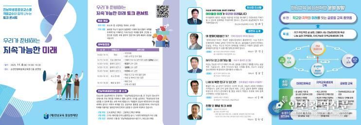 [인천광역신문] 관리자 기자 | 전남교육 꿈실현재단은 오는 11월 8일 오후 2시 전라남도교육청 순천만생태문화교육원 공연장에서 ‘우리가 준비하는 지속가능한 미래’를 주제로 한 토크콘서트를 개최한다.