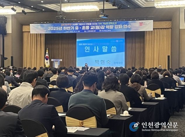 [인천광역신문] 관리자 기자 | 경북교육청은 21일 경주시에 있는 더케이호텔경주에서 도내 유․초등 교(원)감 440여 명을 대상으로 ‘2025 하반기 유․초등 교(원)감 역량 강화 연수’를 개최했다고 밝혔다.