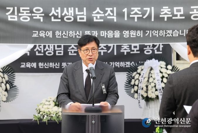 [인천광역신문] 관리자 기자 | 인천광역시교육청은 21일 시교육청 본관 앞 추모공간에서 故 김동욱 선생님의 순직 1주기 추모식을 진행했다.