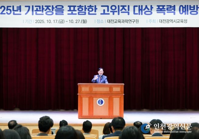[인천광역신문] 관리자 기자 | 대전시교육청은 10월 17일부터 10월 20일까지 기관장을 포함한 고위직 대상 폭력예방 연수를 3회차까지 성공적으로 실시했으며, 10월 27일 4회차를 실시한다고 밝혔다.