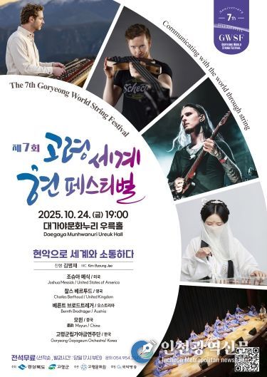 [인천광역신문] 관리자 기자 | 깊어가는 가을, 고령이 세계 각국의 현악 선율로 물드는 『제7회 고령 세계 현 페스티벌』이 오는 10월 24일, 대가야문화누리 우륵홀에서 열린다. 경상북도와 고령군이 주최하고, 고령문화원이 주관하는 이번 행사는 “현악으로 세계와 소통하다”를 주제로, 각국의 현악 연주자들이 한 무대에서 음악으로 교감하며 새로운 예술적 경험을 선사할 예정이다.