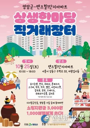 [인천광역신문] 관리자 기자 | 영암군이 25일 서울 성동구에서 ‘영암군 & 텐즈힐1단지아파트 상생 한마당 직거래장터’를 개최한다.
