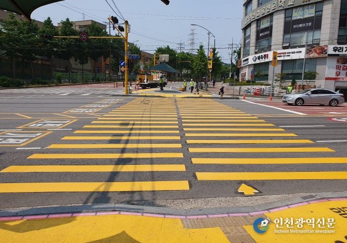 [인천광역신문] 최예준 기자 | 부평구는 ‘2025년 어린이보호구역 기종점 노면 표시 및 노란색 횡단보도 설치 사업’을 완료했다고 22일 밝혔다.