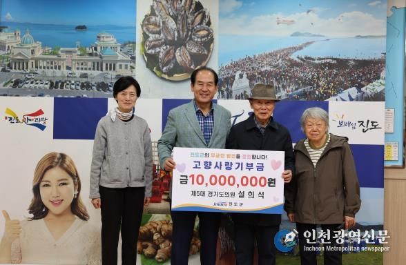 [인천광역신문] 관리자 기자 | 진도군은 제5대 경기도의회 의원을 지낸 설희석 경기도의정회 부회장이 최근 고향사랑기부금 1,000만 원을 진도군에 전달했다고 밝혔다.