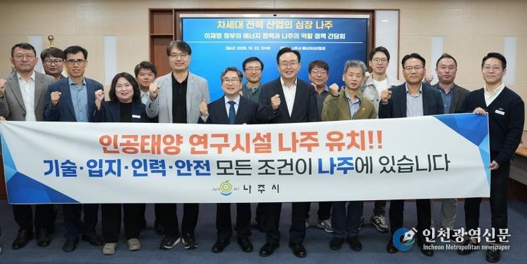 또한 간담회 참석자들은 ‘인공태양 연구시설 나주 유치’를 염원하는 퍼포먼스를 진행하며 정부 공모사업 대응 의지를 함께 다졌다.