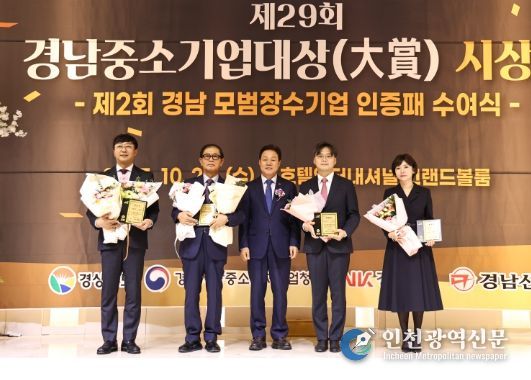 [인천광역신문] 관리자 기자 | 경상남도는 22일 오후 호텔 인터내셔널 창원에서 ‘제29회 경남중소기업대상 시상식’ 및 ‘제2회 경남 모범장수기업 인증패 수여식’을 개최했다.