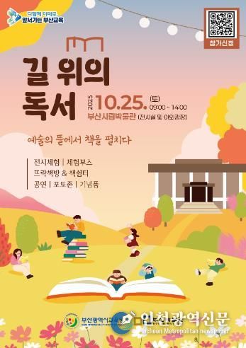 [인천광역신문] 관리자 기자 | 부산시교육청은 오는 25일 오전 9시부터 부산박물관에서 ‘길 위의 독서, 예술의 뜰에서 책을 펼치다’란 주제로 야외 독서 행사를 개최한다.