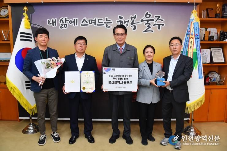 이순걸 군수는 “이번 수상은 6·25 전사자 유가족에 대한 예우와 국가보훈 행정 강화에 대한 울주군의 노력이 인정받은 결과”라며 “앞으로도 국가유공자와 그 가족에 대한 따뜻한 보훈 행정을 지속적으로 추진하겠다”고 말했다.