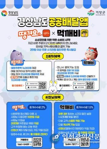 [인천광역신문] 관리자 기자 | 거창군은 경상남도 광역형 공공배달앱 서비스인 ‘땡겨요’와 ‘먹깨비’가 10월부터 본격 운영되어 소상공인들로부터 호응을 받고 있다고 23일 밝혔다.