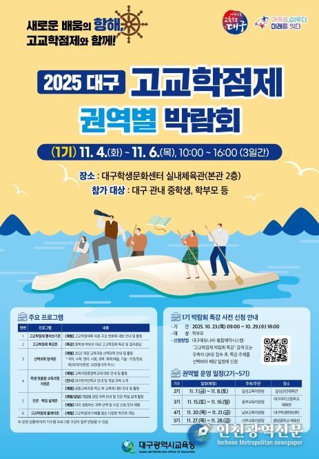 [인천광역신문] 관리자 기자 | 대구시교육청은 올해 전면 도입된 고교학점제에 대한 중학생과 학부모의 이해를 돕기 위해 ‘대구 고교학점제 권역별 박람회’를 총 5기에 걸쳐 개최한다.