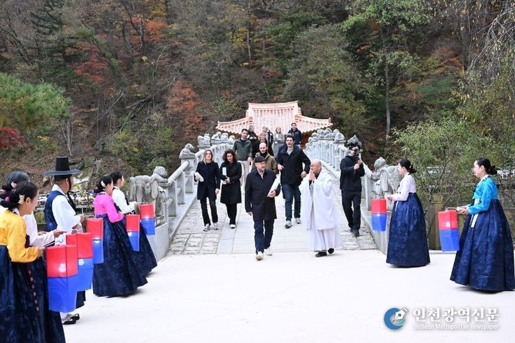 손님맞이 환영 인사는 10월 22일 16시 30분 오대산 월정사에서 한국예총 평창지회 국악협회(회장 김남정)가 참여하여 한복을 입고 귀한 손님 마중할 때 대문 밖에 내걸었던 청사초롱을 들고 전통미 가득한 환영 인사를 선보이며 세계 각국의 대표단에게 한국 전통의 정성과 환영의 마음을 듬뿍 전했다.